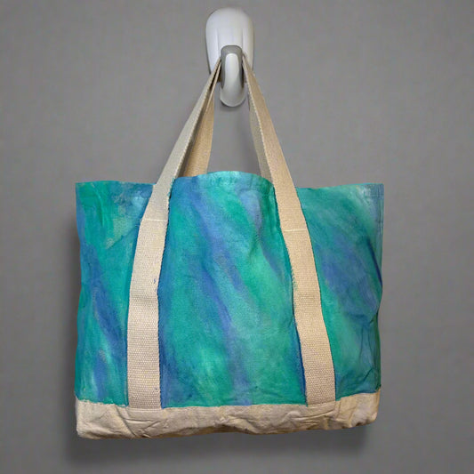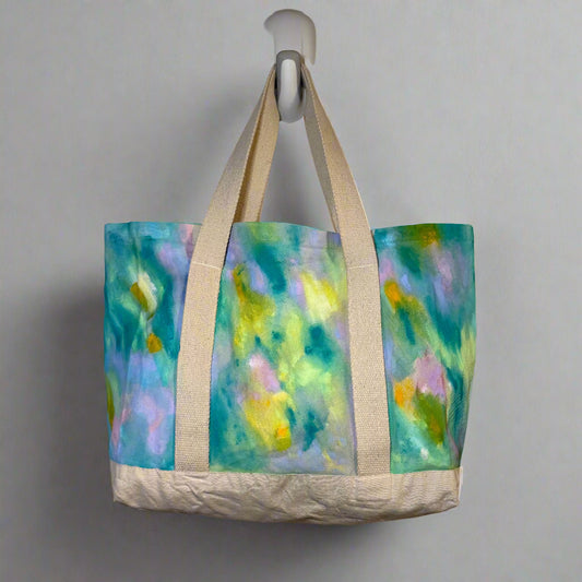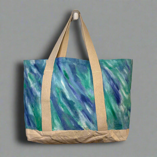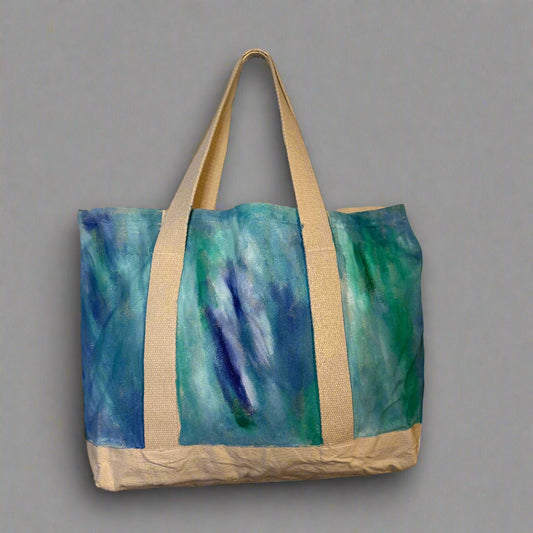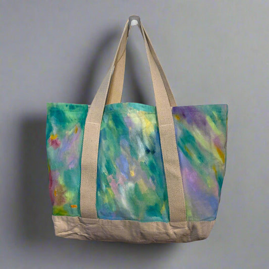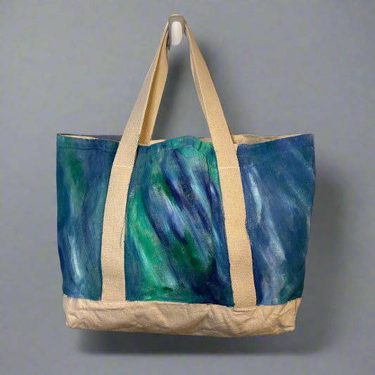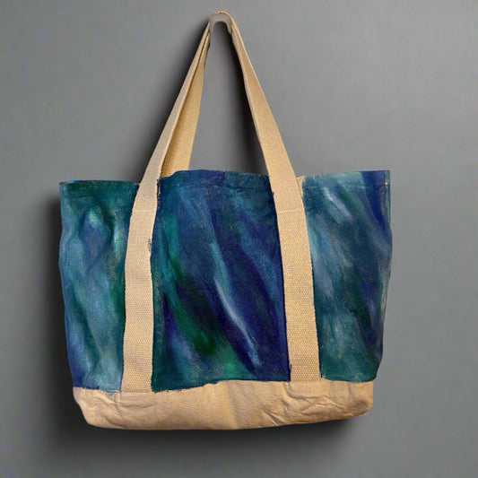 These 'paintings' on the totes were created to evoke emotions and inspire...